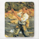 Trabalhos de arte do vintage de um pescador da mosca em um córrego com a tubulação em sua boca