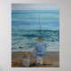 Fine Art Watercolor mostrando um homem pescando no oceano.