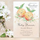 Pêssegos doces estão no caminho o convite para chás de fraldas com adoráveis pequenos pêssegos e folhas verdes colocadas sobre um fundo de pêssego com cor d'água com um confete de ouro espalhado. Visite nosso compro para ver nossa doce coleção de designs gêmeos.
