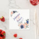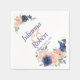 Pêssego e guardanapos florais de aquarela azul