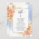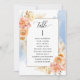 Ajude seus convidados a encontrar sua mesa com este elegante cartão de assentos moderno com nomes de convidados com pêssego refinado e natas florais e cor de água azul. Cartões duplos de lado para que os convidados possam procurar os seus nomes em monitores suspensos, tanto na frente como no verso. Espaço livre ao redor, dando-lhe a liberdade de usar clipes ou furos de perfuração para monitores suspensos, ou usar o suporte/quadro da mesa. Quadro com detalhes florais delicados numa bela mistura de pêssego, laranja, rosa esbranquiçado, coral empoeirado e matizes de champanhe de creme. Detalhes da caligrafia escrita à mão. Várias opções de cores. Ter todos os números de tabela na mesma cor ou cores misturadas de acordo com o tema de cor do evento. Parte da nossa coleção "Peach Floral Delight with Blue" com uma variedade de produtos de coordenação disponíveis, incluindo cartões de números de tabela e menus. Visite a coleção inteira em: https://www.zazzle.com/collections/peach_floral_delight_with_blue-119436951689312574