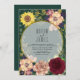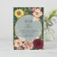 Elegante, moderno, ousado, boho, botânico, burgundy floral, cor-de-rosa-pêssego e flores brancas esmeraldas brancas convite para o casamento com o roteiro de caligrafia de tendências.