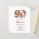 Um convite moderno, na moda e glamouroso para um 90 aniversário. Fundo branco, decorado com um pêssego e uma flor púrpura de cor d'água. O nome é escrito com um moderno estilo escrito à mão. Personalize e adicione os detalhes da sua festa. O número 90 é escrito com uma fonte de estilo de balão, script. 1 folha = 1 convite impresso de borda a borda.