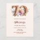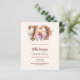 Um convite moderno, na moda e glamouroso para um 70 aniversário. bege, fundo colorido creme, decorado com pêssego e flor de cor d'água púrpura. O nome é escrito com um moderno estilo escrito à mão. Personalize e adicione os detalhes da sua festa. O número 70 é escrito com uma fonte de estilo de balão, script. 1 folha = 1 convite impresso de borda a borda.