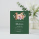 Um convite moderno, na moda e glamouroso para um doce 16. Fundo verde esmeralda, decorado com cor rosa, pêssego e flor púrpura de cor d'água. O nome é escrito com um moderno e escuro, rosa dourado, escrito com letra de estilo manuscrito. Personalize e adicione os detalhes da sua festa. O número 16 é escrito com uma fonte de estilo de balão, script. 1 folha = 1 convite impresso de borda a borda.