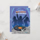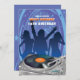 Um convite do dance party para adolescentes e adultos. As características deste design emocionantes três mostram em silhueta figuras no movimento com vibrações azuis e estrelas no fundo. No primeiro plano nós vemos um registro jogar na plataforma giratória de um DJ.