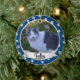 Adicione uma foto e um nome ou ano a este ornamento de fotos de pata acentuado em azul para qualquer animal de estimação.