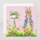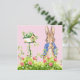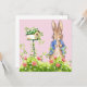 Peter o Coelho em seu jardim checando sua casa de pássaros.