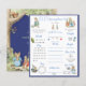 Este convite para chás de fraldas neutro em termos de gênero apresenta Peter the Rabbit, sua família e seus amigos em um cenário de floresta e campo. A paleta é colorida com um texto azul escuro e claro. As ilustrações do Beatrix Potter estão incluídas na parte frontal e traseira, Você pode facilmente preencher o modelo com seus próprios detalhes ou ir para edição posterior para alterar o estilo, tamanho, cor e posicionamento da fonte, se desejar. Veja os itens correspondentes na Coleção de Chás de fraldas Peter the Rabbit Forest Amends