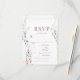 O Petite Wildflower Wedding RSVP apresenta flores silvestres delicadas e de cor d'água com espaço para o número total de convidados (o que pode ser confuso às vezes!) juntamente com a escolha da refeição e espaço para os convidados indicarem alergia ou sensibilidade à comida.