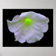 Esta bonito poster apresenta uma fotografia de uma flor de petúnia que foi manipulada para fazer o centro da flor brilhar verde-claro. As pétalas exteriores são brancas e as veias que saem do centro da flor também brilham verdes. A flor está sobre um fundo preto para que fique de pé. Uma borda verde completa a design.