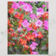 Petúnia rosa e gerânios vermelhos