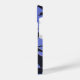 The ethereal light blue background represents the serene depths of water, while the dark blue silhouettes of waterlilies create a striking contrast, as if looking from below the water line, but at the flowers above. Delicate pink highlights outline the lilies, adding a vibrant touch that mimics the play of light and shadow from above, evoking a sense of tranquility and elegance.
