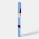 Funda abstracta minimalista con líneas burdeos sobre fondo celeste. Moderna y elegante, protege tu iPhone mientras aporta un toque artístico único y lleno de contraste.