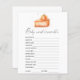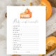 Pequeno chá de fraldas de abóbora de torta. Piada de abóbora com aquarela pequena. Chá de fraldas de queda. Respostas: CRAVINGS, CRYING, PACIFIER, FRASCO, LUZ NOTURNA, LULLABY, STROLLER, EPIDURAL, BURP, ALTA CADEIRA, SACO DE DIAPER, SWADDLE