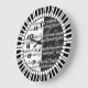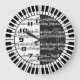 Um design de teclado musical, moderno e na moda, preto e branco, com as teclas de um piano em forma circular, para criar uma fronteira em torno da partitura musical. Um presente musical contemporâneo ideal para pianista, amante de música ou músico.