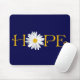 Este marinho azul-mouse personalizável tem a palavra Esperança nele, com uma flor branca e amarela Shasta Daisy no lugar do O na Esperança. Altere a cor de fundo para o que você quiser. Adicione seu próprio texto, se quiser.