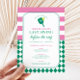 Pickleball na última vez antes dos convites de festa de solteira do anel! Ela conheceu seu jogo agora é hora de celebrar a noiva-a-ser com este convite de fim de semana de solteirona do tema picleball. Todo o texto é editável, personalize com as noivas iniciais, os detalhes de sua festa, local, itinerário de fim de semana etc. Incluindo um design fofo personalizado. Agora, bata nos tribunais para esta despedida de solteiro - quer esteja em Palm Primavera California, Scottsdale Arizona, Nashville Tennessee ou outro lugar incrível!