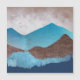 Uma bela paisagem com texturas únicas mostrando uma paisagem de montanha azul com céu nublado e tons de magenta marrom e escuro.