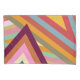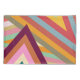 Este travesseiro tem um design retrovisor dos anos 70 feito de camadas de cabeça para baixo Vs em três lugares, todos em cores retrorreflectoras.