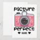 Imagem perfeita roupa e presentes tem uma câmera rosa e uma citação 'perfeita'. Torna-se perfeito para fotografar ou capturar memórias e postar nas mídias sociais. Quer este design em um produto diferente? Clique em "EXIBIR TODOS OS PRODUTOS" na parte superior esquerda desta descrição e escolha o item desejado. Você pode ajustar o tamanho deste design para o ajustado para o produto selecionado. Você também pode alterar a cor da opção name. Temos milhares de designs para escolher na nossa loja para toda a família!