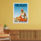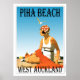 Um poster retrô que nunca foi até agora. Uma recriação de um velho poster. Uma praia de Piha, uma cena de praia de estilo vintage da era da arte deco. Cores brilhantes com uma mulher na praia a tomar banho de sol com um cobertor vermelho e um boné de bolinhas tipo flapper. Exclusivamente por Zazzle.com/Retro_Art Store.