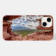 capas de iphone - Uma vista do Pikes Peak e de parte das Montanhas Rochosas durante o pôr do sol através de um buraco nos Gêmeos Siameses no Jardim dos Deuses em Primaveras do Colorado, Colorado, Estados Unidos. Pikes Peak é o pico de cúpula mais alto da cordilheira da Frente Sul das Montanhas Rochosas. Procurando mais produtos? Visite minha loja: http://www.zazzle.com/timelessmomentsphtgy A arte foi tirada por Jennifer White com Fotografia Moments Eterno. Todas as imagens são protegidas por direitos autorais.