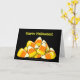 Este design colorido do Dia das Bruxas tem uma pilha do milho de doces, dos doces alaranjados, amarelos e brancos triângulo-dados forma do Dia das Bruxas.
