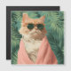 Traga uma dose de charme de repouso para a sua roupa, saco ou chapéu, com o nosso pino do botão Legal Cat Vacation Vibes. Apresentando óculos de sol gengibre e gengibre brancos ilustrados e balançando e embrulhados em uma toalha rosa acolhedora contra folhas tropicais exuberantes, esta design irradia pura energia de verão. Perfeito para amantes de gatos, entusiastas de praia, e para qualquer um que vive em estilo. Impressão de alta qualidade com cores vívidas Ideal para jaquetas, mochilas ou pátios Durável e leve. É um presente divertido para amigos e outros fãs de gatos