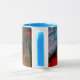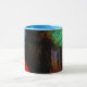 Um design artístico com pincéis de tinta sobre uma caneca de dois tons
