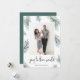 Compartilhe cartões de natal com estes cartões de Natal com fotos modernos, com sua foto favorita flanqueada por grampos de pinheiro aquoso em verde-molhado chic. "Joy to the World" aparece na parte de baixo na tipografia escrita à mão. Personalize com o nome ou nomes da sua família e o ano em caracteres simples e modernos.