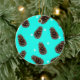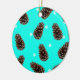 Cones castanhos naturais com pequenos flocos de neve sobre um fundo bonito de cor aqua. Adicione uma cor ousada à sua árvore de Natal.