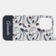 Uma capa de telefone com um belo padrão. Pinhas, penas, agulhas de pinho e bagas. Design de aquarela russa.