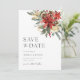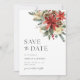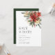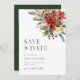 Pinho de Natal Russo Verde Cone Vermelho e Dourada Poinsettia Feriado Floral de Inverno Casamento Salvem o Convite para Data. Bohemian Style Invitation with Elegant and Simple Boho Rustic Red Floral Berry and Pine Botanicals in Hand-print Watercolor (Convite para Buquê de estilo boêmico com Berry Floral Vermelho Elegante e Simples Boho Russo e Pinheiros em Aquarela com Impressão Mão. A cor de fundo verde é linda para casamentos de vassoura e casamentos de Natal. Convite simples e imprimível para feriados e casamentos no inverno.
