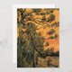 Pine Trees contra um Céu Vermelho com Setting Sun por Vincent van Gogh é uma pintura típica de paisagens de apos impressionismo de arte. Uma floresta de pinheiros com um céu vermelho e laranja brilhando no pôr do sol. O sol está brilhando através dos galhos verdes de árvores, cones de pínus e agulhas na natureza. Sobre o artista: Vincent Willem van Gogh (1853-1890) foi um dos mais famosos pintores Post Impressionistas de sua era. Seu trabalho foi muito notável por sua beleza áspera, honestidade emocional e cor ousada.