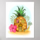 Uma casa de férias de conto de fadas plantada nas areias da ilha adornada com um brilhante, rosa, hibisco e uma rede de bananas. Ilustração original de Noël Snow.