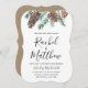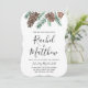 Convite de casamento no inverno rústico apresentando um layout moderno com nossos pineges e folhagem pintados manualmente.