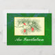 Vintagem de arte natalícia ou Holiday ilustrando um pinho em verde com pinheiro vermelho dentro ouro num fundo verde da floresta com um padrão de pinho azul e verde. Use esta modelo para criar seus próprios convites pessoais para suas reuniões festivas.