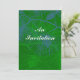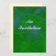 Convites personalizados de Natal ou Feriado com pínus entrando em um fundo verde da floresta com um padrão de pinho azul e verde. Use esta modelo para criar seus próprios convites pessoais para suas reuniões festivas.