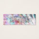 Este cartão de exibição de logotipo de negócios de brincos pequenos e glamourosos é a maneira perfeita de estilizar sua embalagem e adicionar seu próprio charme e personalidade. Ele retrata gotas de brilho grossas e cintilantes impressas em falso sobre um fundo de nácar pérola, opala, holográfico e iridescente com uma paleta de cores que inclui rosa, verde-teal, roxo, branco, azul e amarelo suave. Ele também apresenta uma tipografia de letra cursiva manuscrita doce e delicada para combinar com o visual fofo e moderno deste design. É bonito, glamouroso, chique e moderno; a maneira perfeita de anunciar seu negócio e estilizar seu material de marketing e propaganda para seus clientes. (furos de brinco são apenas marcadores impressos, a perfuração deve ser feita pelo cliente)
