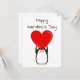 Este design apresenta um pinguim bonito segurando um grande coração vermelho sobre a cabeça. A design é moderna, com poucas cores. O texto "Feliz dia de os namorados" é completamente personalizável; você pode escrever sua própria mensagem.