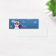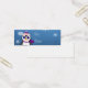 Um adorável pinguim de desenho animado com um cachecol roxo e um chapéu roxo e cor-de-rosa sobre um fundo azul com flocos de neve
