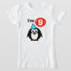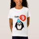 Camisa do aniversário dos miúdos 9a para a criança da criança de nove anos. Desenhos animados engraçados do pinguim com balão e o chapéu vermelhos do partido. Número da idade de Personalizable, 1 design da celebração do divertimento 2 3 4 5 6 7 8 9 etc. para a festa de aniversário do miúdo nono.
