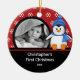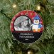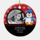 Os enfeites de natal bonitos da foto que caracterizam um pinguim adorável ajustado em um fundo vermelho do floco de neve, apenas adicionam SUA FOTO! Aperfeiçoe para o primeiro Natal & o segundo Natal. Um presente do Natal da maravilha sure a ser estimado por muitos próximos anos.