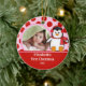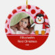 Os enfeites de natal bonitos da foto que caracterizam um pinguim adorável ajustado em um fundo cor-de-rosa & vermelho das bolinhas, apenas adicionam SUA FOTO! Aperfeiçoe para o primeiro Natal & o segundo Natal. Um presente do Natal da maravilha sure a ser estimado por muitos próximos anos.