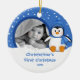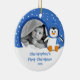 Os enfeites de natal bonitos da foto que caracterizam um pinguim adorável ajustado em um fundo azul do floco de neve, apenas adicionam SUA FOTO! Aperfeiçoe para o primeiro Natal & o segundo Natal. Um presente do Natal da maravilha sure a ser estimado por muitos próximos anos.