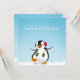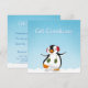 Uma bela ilustração do inverno: um pinguim com luvas e tocas de humor está caminhando na neve. Envelope correspondente a este Certificado de Oferta: