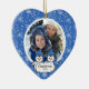 Nossos enfeites de natal da família caracterizam uma fileira de 2 pinguins ajustados em um fundo azul enchido floco de neve! Personalize com sua informação e data e você são todos ajustam-se para ir! Presente datado maravilhoso da lembrança para seu primeiro Natal e uma grande adição a você coleção dos enfeites de natal.