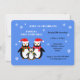 Esta design mostra uma linda família de pinguins vestindo chapéus de natal e lenços de stripey, em um fundo azul com flocos de neve espalhados. O texto é totalmente personalizável. Atualmente é definido como um convite para celebrar o primeiro natal do seu bebê, mas você pode editá-lo para atender às suas necessidades. No verso, há um pinguim bebê com um fundo de flocos de neve, que corresponde ao lado frontal. Pode guardar isto como está, ou pode substituir a imagem por uma das suas.
