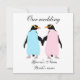 Um convite para o casamento. Dois pinguins, ambos pretos, as partes brancas do pinguim foram substituídas por rosa pastel e azul pastel. Eu baseei estes pássaros em Hoiho, O Pinguim Olhado Amarelo. Este convite pode ser totalmente personalizado para atender às suas necessidades.
